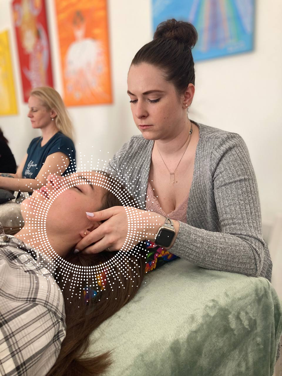 Lehnete si na lehátko a přikryji Vás dekou, já se budu lehce dotýkat Vaší hlavy a vy můžete odpočívat, klidně i spát. Prostě si užijete chvíli klidu. V průběhu terapie používám esenciální oleje na hlubší prožitek.